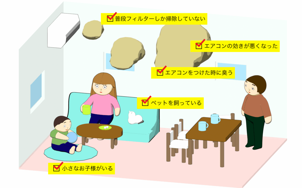 キレイにするだけじゃない 大切な人に喜びと満足を 大切な人に喜びと満足を キャンペーンについて 本キャンペーンはチラシが投函・またはDMが届いた地域と期間に限定した特別価格のキャンペーンとなっております。お手元にお知らせが届きましたらお早めにご検討くださいませ エアコンクリーニングを 検討中ですか? おそうじ部長は各種家庭用エアコンをリーズナブルな価格で実現しています。もちろん分解洗浄で丸洗いいたします。 こんな方におすすめです! エアコン内部は想像以上に汚れていると思ってください! 今までに、エアコン本体の分解洗浄を一度も行っていないお客様、及び、お掃除機能付エアコンのお客様は特にお勧めです。 作業の様子分解前分解パーツに分解洗浄前洗浄後洗浄前洗浄後洗浄前&洗浄後室外機洗浄室外機分解洗浄 【実際の作業風景】 受付地域 下記全国ネットワークの営業所にてチラシが配布された地域にて受付しております。 サービス エアコン分解洗浄 東京エリア:東京・千葉・埼玉 年間1人あたり1,000台以上施工の経験豊富な自社スタッフがお客様宅にお伺いいたします。お使いのエアコンがお掃除機能※付きかどうかお確かめください。基本的にサイズや汚れにかかわらず「お掃除機能なし」のエアコンは1台あたりキャンペーン適用前価格税込13,200円で、「お掃除機能付」のエアコンは1台あたり税込19,800円で分解洗浄いたします。キャンペーン価格はお手元のチラシをご確認ください。 エアコンにはお掃除機能のついている機種とついていない機能の2タイプがあります。お掃除機能とは、主にフィルターを自動洗浄する機能のことを指し、メーカーによりそれぞれ「自動お掃除」「フィルター自動お掃除」「フィルター自動おそうじ」「自動洗浄」「おそうじメカ」「お掃除ロボット」などと呼ばれています。ダストボックスやお掃除ユニットがエアコンに装備されている、また、リモコンに「手動掃除」や「フィルターおそうじ」といったボタンがある場合はお掃除機能付エアコンとなります。お持ちのエアコンがどちらに該当するか不明な場合は、型番をお知らせください。 1 2 3 その他特殊エアコンのクリーニングについてもお気軽にお問合せください。なお、飲食店様、一部店舗様はキャンペーン適用外とさせていただきます。 お気軽にチラシ記載の フリーダイヤルへ その他ハウスクリーニングメニュー おそうじ部長ではエアコン分解洗浄以外にも以下のようなハウスクリーニングメニューをご用意しています。ご自分ではなかなか落としきれない汚れやサビをプロに任せてすっきりしてみませんか? 浴室 浴室乾燥機 洗浄 浴室換気扇 洗浄 カビ取り 鏡の錆取り 浴室クリーニング キッチン シロッコファン プロペラファン レンジフード 換気扇 洗面所 トイレ 浴室 よくあるご質問 お客さまから寄せられたよくあるご質問と回答を掲載しています。お問い合わせ前にご確認ください。 エアコンクリーニングについて 見積は無料ですか? はい。見積は完全無料でお伺いします。もちろん見積だけでもけっこうです。明朗会計でお見積後、サービス価格にご納得いただいてからのご予約になりますので、お気軽にお見積ください。 本当に分解洗浄ですか? はい、部分洗浄ではなく、エアコンを分解して丸ごと洗浄いたします。標準・お掃除機能付ともに表示の価格で分解洗浄致します。 作業時間はどれくらいですか? エアコン1台あたり1時間ほどです。 安いので作業クオリティが心配です 年間1000台以上の作業を行う自社スタッフがお伺いして、きちんと作業させていただきます。養生から分解、洗浄、組立、動作確認と実施させていただきます。万一気になる事がございましたら、作業スタッフまでお申し付けください。 他社で依頼した時にエアコンを壊されてしまったが、こちらでは保証がありますか? 故障や破損が起きないように細心の注意を行い作業させていただいております。その上で万一作業上の問題で破損や故障が起きた際には責任を持って、弊社費用にて修理させていただきますのでご安心ください。 格安業者に頼んだら汚れが落ちていなかったがそちらは大丈夫ですか? 弊社では料金にかかわらずお客様に依頼されたことは汚れ落としであると考えておりますので、きちんと汚れが落ちるまで作業させていただきます。万一作業後に気になる汚れがあった場合、責任を持って再洗浄させていただきますのでお申し付けください。 エアコンクリーニングについて 値段が他社と比べてずいぶん安いのはなぜですか? 通常単独出張の場合1台あたり12,000円~18,000円程度かかるエアコン分解洗浄ですが、キャンペーン期間にお申込のお客様の作業を一斉に実施することで効率化し、出張料金・人件費などのコストを大幅にカットしキャンペーン料金での実施を可能としました。是非この機会にご利用くださいませ。 本当に1台だけでも来てくれますか? はい。もちろんです。1台だけで